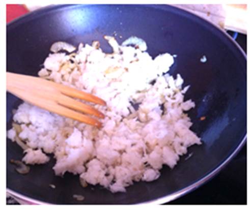 כאשר חם, יהיה קשיח כאשר קר) 9. מוסיפים את הדג המפורר, מערבבים היטב ומבשלים עוד 2