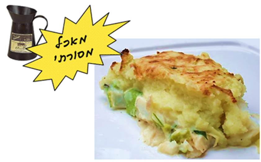לקונצנזוס): 1. בלי בצק a. הכל מעורבב, רך, מגישים עם כף (פשטידה דגים) b. עם שכבה עליונה של פירה תפו"א, יש צורה, מגישים