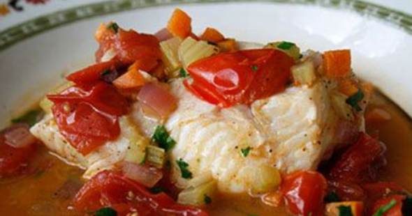 6 פילה דג לבן בקוביות (או פרוסות) 1 בצל ירוק מקוצץ 1 שן שום מקוצץ 2 גזר בפרוסות 2 עגבניות בשלות בקוביות כף קמח כוס ציר דגים או מים ½ כוס יין לבן יבש 1.