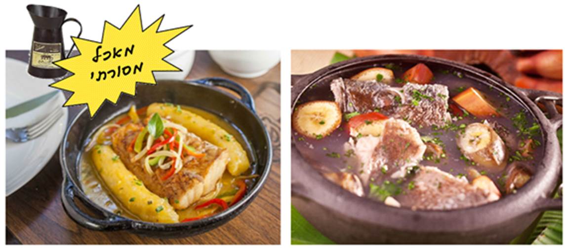 ל-6 סועדים 1 ק"ג בשר דג לבן 2-1 בצל בנוני קצוץ 4 שן שום קצוץ 1 פילפל חריף (או מתוק לפי טעם) 4 בננות לא בשלות (ממש ירוק-ירוק) 1 ליטר ציר דגים חם 3 עגבניות בנוניות חתוכות לקוביות פטרוזיליה, כוסברה 1. מטפטפים מיץ לימון ומלח על הדגם, ½ שעה