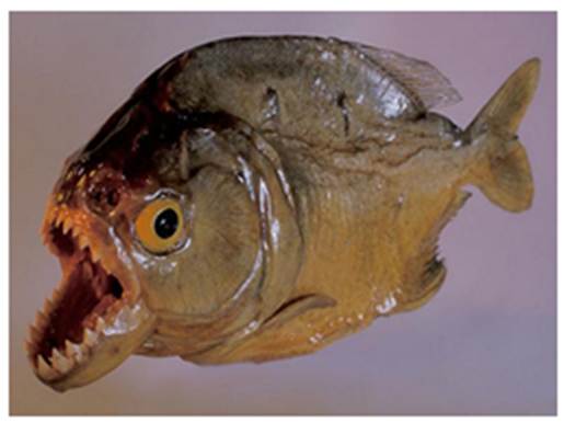דג יחסית קטן אבל עם שיניים כמו מסור, וכאשר דגי פיראניה נופלים באלפים על חיה