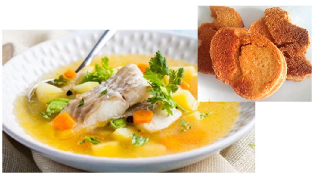 עוד 7 דקות באש נמוכה (קוביות הדג האלו לא מתפוררות, נשארות שלמות במרק) 6. מרק דגים אוכלים חם עם לחם, טוב יותר עם טוסטים גוונים: 1. תיבול (לפני תיקון מלח !) ב-5-4 פילה אנשובי מרוסקים