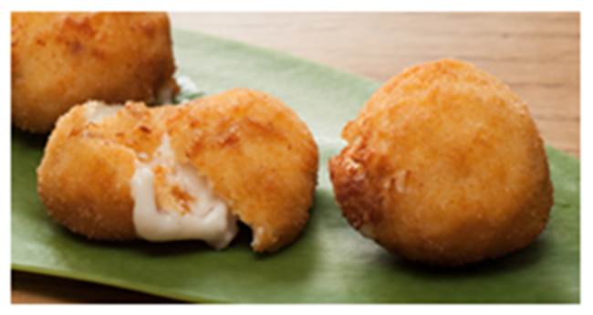 או מטבעות של חומרים המכילים ביצים מוקצפות לא מבושלים וקמח, המייצרים "לב קשיח" לאחרי הטיגון, ואין