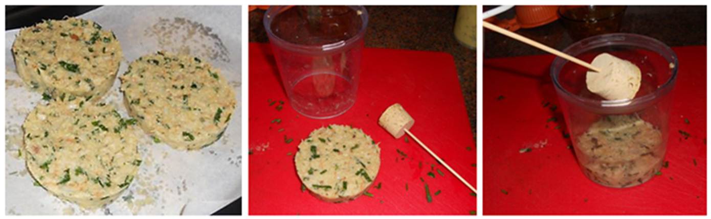 כוס ללא תחתית, לוחצים 4-2 כפות תערובת עם פקק על שיפוד או משתמשים בפלסטיק