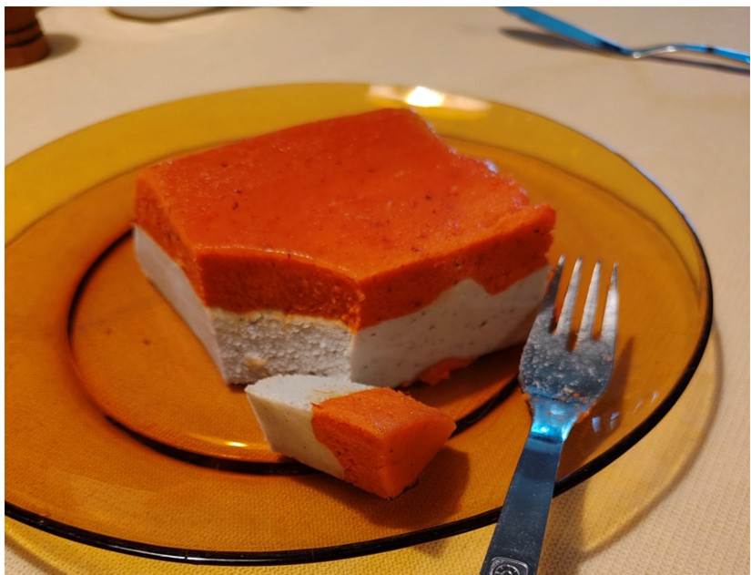 בערך העליון (יותר ג'לטין). התמוססות הג'לטין עלולה לקחת חצי שעה או יותר. חשוב מאוד לקרר היטב את התבנית לפני שהופכים אותו. אם