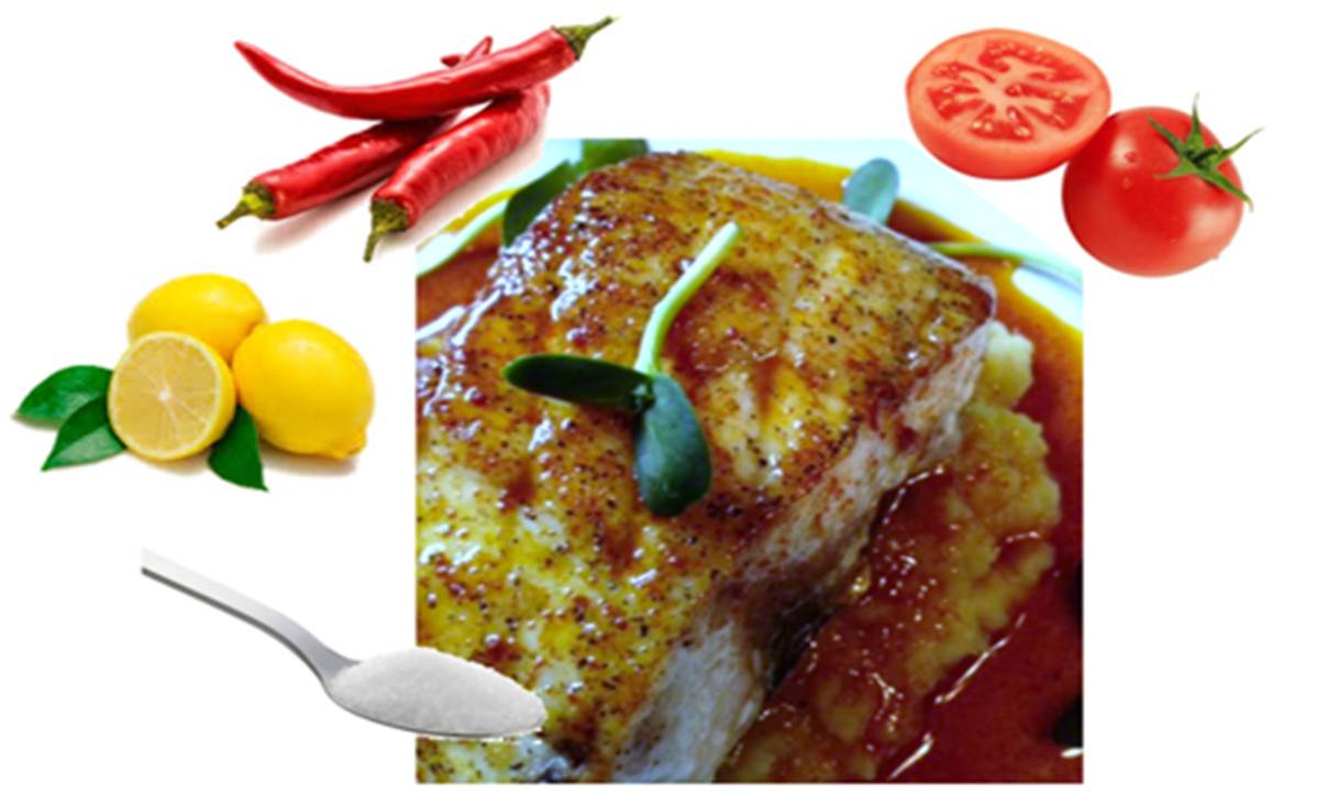 את הדג מעל התבשיל, חתיכות העגבניה והלימון מעל הדג