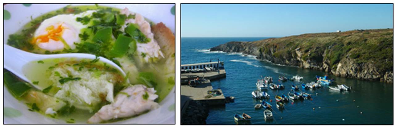 מתחיל לכיוון דרומה אזור הנקרה Alentejo ( alem-do-Tejo "מעבר לטחו" ) אחד המאכלים המסורתיים של אלנטחו הינו מרק דגים
