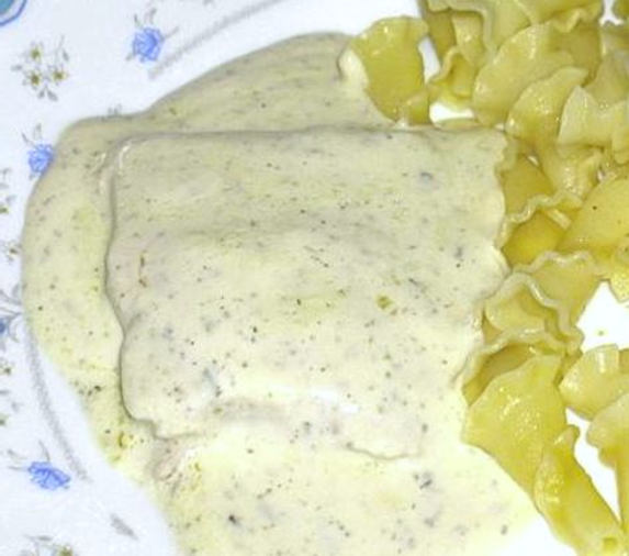 גבינה כחולה אחרת) 100 ג גבינה ריקוטה 100 ג שמנת מתוקה 30-20 אחוז חמאה 2 כפות יין לבן יבש פילפל לבל 1. קצת לימון ומלח-פילפל לבן על פילה הדג ½ שעה לפני 2. מחממים את התנור ל-180 מעלות 3. מטגנים את הבצל בחמאה עד ששקוף 4. מוסיפים 2 כפות יין לבן יבש, טיפה מלח, ומבשלים עוד 2