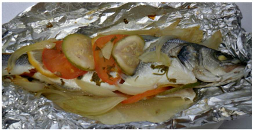 כל פעם עם תבלין אחר ולקבל כל פעם טעם אחר. גוונים – ירקות אפשר להכניס ירקות בתוך העטיפה. אבל: זמן בישול הדג בעטיפת נייר כסף בתנור הינו רק 20