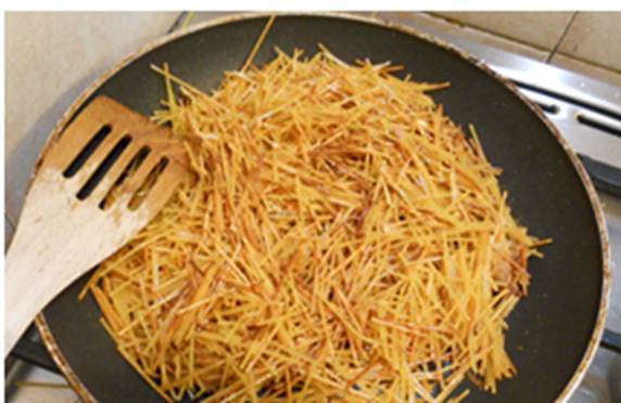 2. באותו מחבת מטגנים את האטריות היבשות במעט השמן